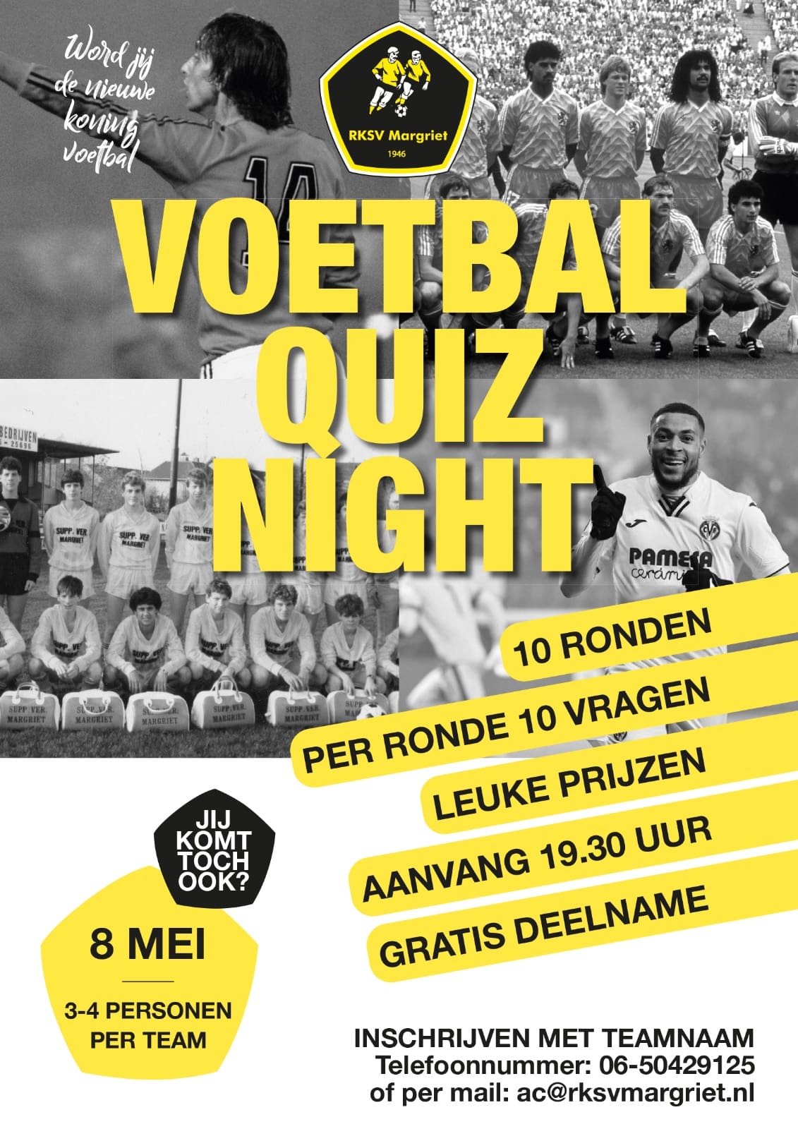 Op Vrijdag 8 mei vanaf 19:30u is Het Voetbal Quiz Night bij RKSV Margriet!